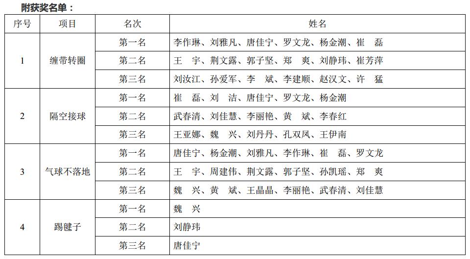 朗朗的歌聲之后, 大家投入到游戲當中,在三個團體項目(纏帶轉圈、 隔空接球、氣球不落地)和一個單人項目(踢毽子)游戲中,大家表現的十分熱情, 充分提現了員工們積極向上的精神面貌。