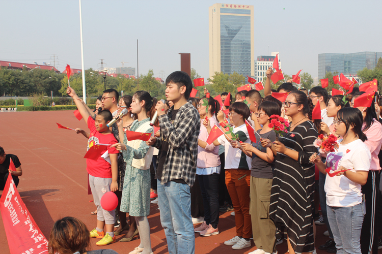 9月30日下午,全體員工齊聚唐山市體育中心操場,伴隨著歡快的音樂,穎總走到了主席臺前,深情地表達了對祖國的祝福,并宣布了活動開始。